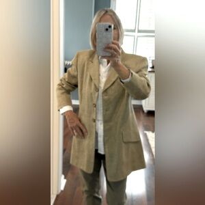 Sophisticated linen blazer with 3-button closure and padded shoulders. 91% linen 9% polyester. Wear this Made in USA classic in oversized fashion or size to a more tailored look. Ideal for office and casual wear.