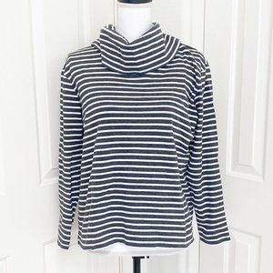 Jones New York Long Sleeve Cowl Neck Pullover Top Black White Stripe Sz XL