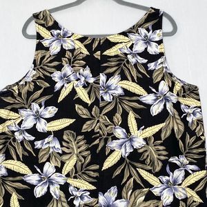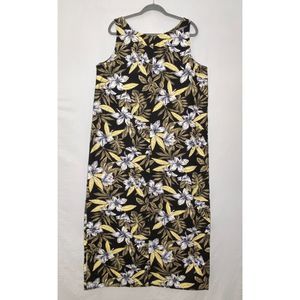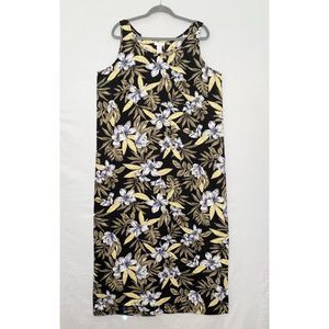 Jones New York Maxi Dress 16 Black White Gold Floral Linen Sleeveless Pullover