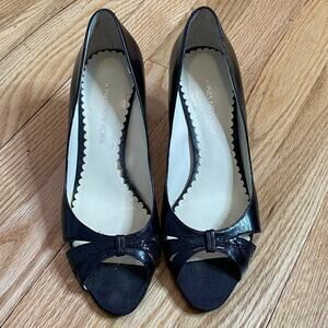 Jones New York Maxy2 open toe strappy heels black leather 6