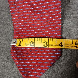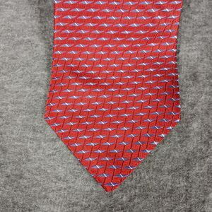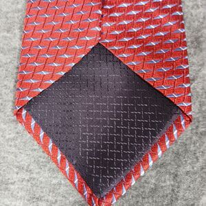 Jones New York Men's Tie Red with Blue Diamond Geometric Print 100% Silk