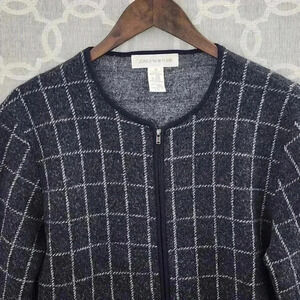 Jones New York Merino Wool Checkered Gray Full Zip Women's Blazer M