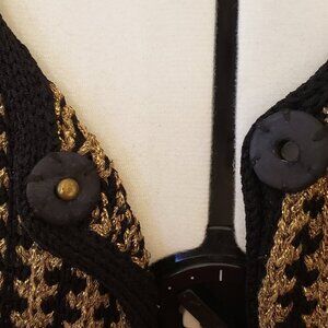 Jones New York Metallic Black and Gold Cardigan, Size XL