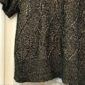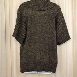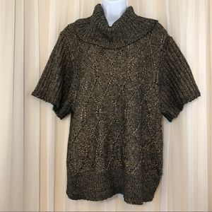 Women's Jones New York Metallic Cooper Cowl Sweater. Also has black and brown colors. Short Sleeves. 63% Nylon, 28% Acrylic, 9% Wool. Size Medium.