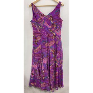 Jones New York Midi Dress Fit & Flare Patchwork Sleeveless Ruffle Paisley Lined Colorful Purple Womens 14