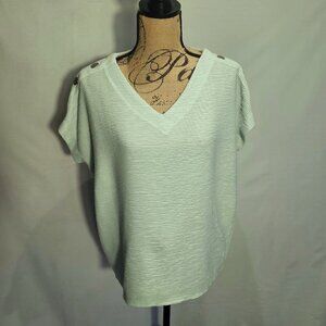 Jones New York Mint Green Textured Ribbed Shirt V-Neck Large