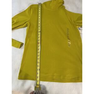 The Jones New York Mock Turtleneck in Chartreuse XL is a stylish and versatile piece for women's clothing. This soft top features a mock turtleneck neckline and comes in a vibrant chartreuse color, adding a pop of color to any outfit. There is a tiny fabric nub on left sleeve - see pic