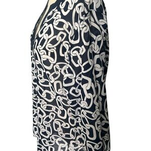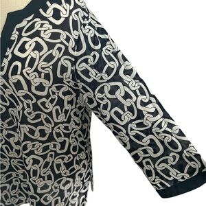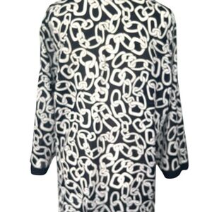 Elegant top with a striking chain design. Features a classic neckline and comfortable fit.