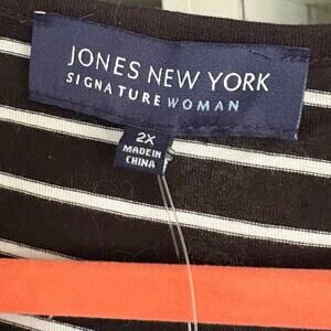 Jones New York NEW Top Striped Shirt Tunic 2X V-neck Flowy