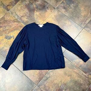 Jones New York Navy Blue Long Sleeve Button Shoulder Blouse 12. Measurements in photos. In good, pre-loved condition. Comes from a smoke free home.
