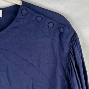 Jones New York Navy Blue Long Sleeve Button Shoulder Blouse 12