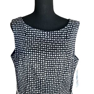 Jones New York Navy Ivory Polka Dot Belted Sleeveless Dress 14W