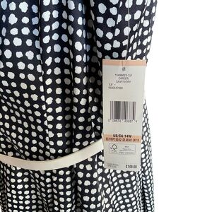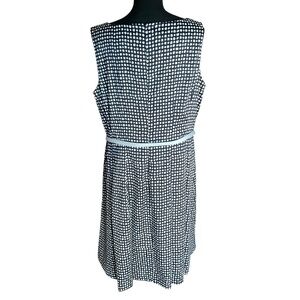 Jones New York dress, plus size dress, polka dot dress, navy ivory dress, career dress, sleeveless A-line dress, wedding guest dress, workwear, 14W dress