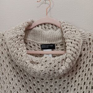 This Jones New York blouse is a stylish addition to your wardrobe. The net blouse features a striped pattern, cowl neckline, and short sleeves. It has a pullover closure and is made of a blend of nylon and cotton. The blouse is perfect for travel, casual outings, or workwear. It is available in size medium, and the color is metallic brown. The blouse is a regular fit and has a casual sleeve type. The fabric type is woven, and it has stretch features. This blouse is perfect for any season, whether it is winter, summer, fall, or spring. The blouse is not handmade, and it is not a vintage piece. The brand is Jones New York, and the blouse is a basic style with a beach theme.