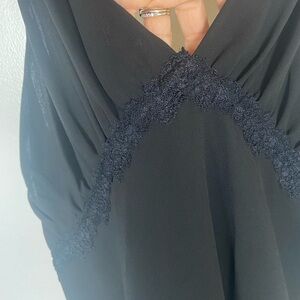 Jones New York Nightgown Black Chiffon Size XL Lace Trim Chemise Feminine Sexy