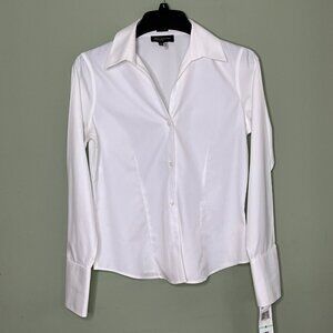 Jones New York Non-Iron Button Up Top sz 8 Clean Girl Logom Capsule Office