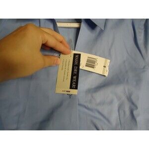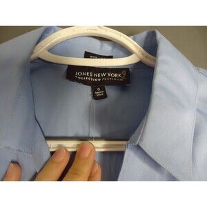 Jones New York Non-Iron Cotton V-Neck Career Blouse Short Sleeve Light Blue SZ 0