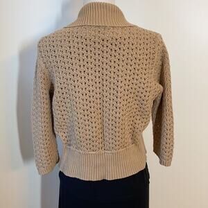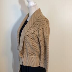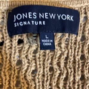 Jones New York Open Crocheted Khaki Cardigan Large