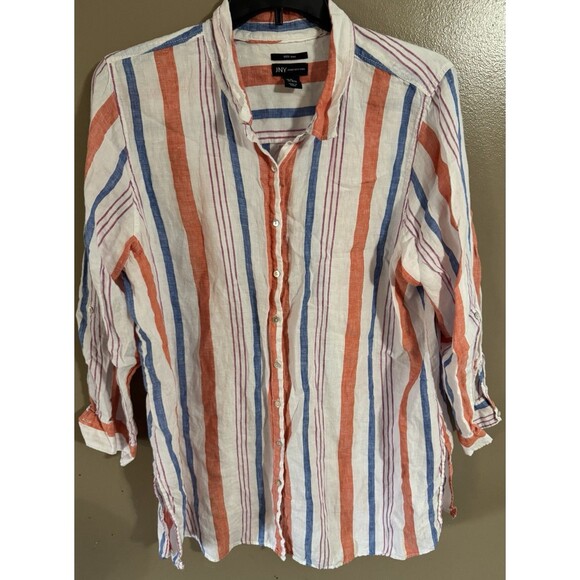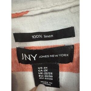 Jones New York Orange blue white 100% Linen Button up women’s shirt size 2X