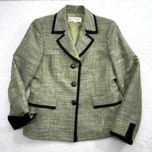Description: Jones New York Pant Suit Sage Green Black Trim Career Classic Office Womens 10