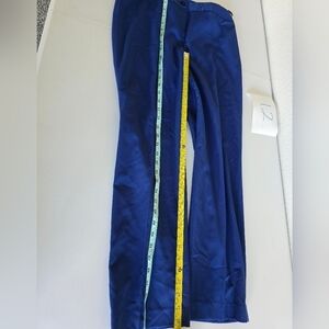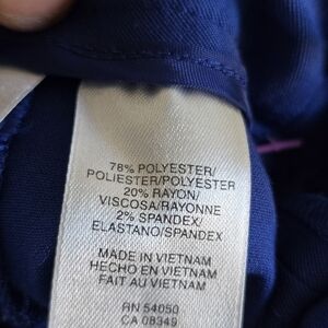 These NY Collection pants are designed for women in a petite size 6P with a high-rise waist measuring 30 inches. The pants are in a solid blue color made from a blend of polyester and spandex, providing a slim fit with a straight leg style and a flat front. They feature a stretch fabric type and have a 26-inch inseam, making them suitable for formal or business occasions.