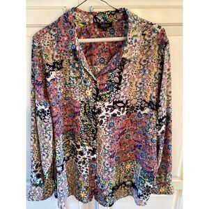 Jones New York Patchwork Flower Power Button Down Top Sz 1X Retro