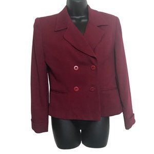 Jones New York Petite Vintage Burgundy Double Breasted Worsted Wool Blazer Size 6 Petite