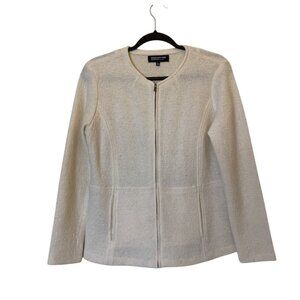 Jones New York Petite Winter White Merino Wool Jacket Sweater Zip Front PL 12P