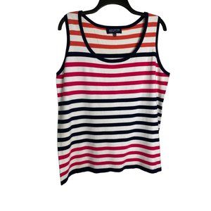 Jones New York Pink, Blue and Navy Stripe Nautical Festive Modal Tank Size 1X