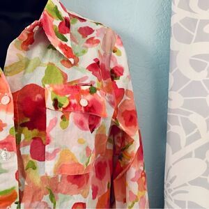 Jones New York Pink & Green Floral Long Sleeve Button Down Shirt Size Small