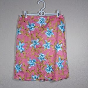 Jones New York Pink Midi Skirt with Blue Daffodils
