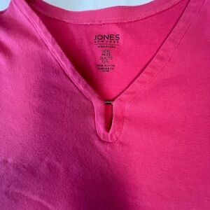 Jones New York Pink Short Sleeve Tee. Size XL V Neck with small silver decor pc