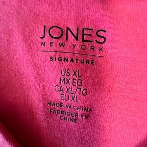 This Jones New York tee features a vibrant pink hue, perfect for adding a pop of color to your wardrobe. Crafted from soft, breathable fabric, it offers comfort and style for any casual occasion. The short sleeves and classic design make it a versatile addition to your collection. Good condition