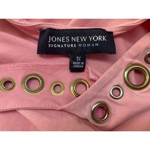 Jones New York Pink Tee Shirt Metal Grommet Accents - Size 1X
