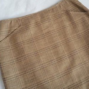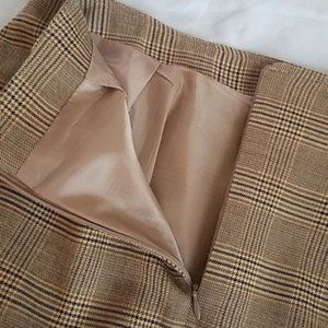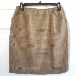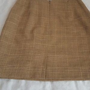 Above the knee length wool pencil skirt by Jones New York. Size 8 Petite. Plaid with nice interior lining, zipper closure and lower slit opening in the back, and two front pockets. In great condition. No stains, rips, or holes. Nice business professional skirt for the office.
