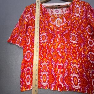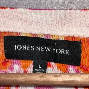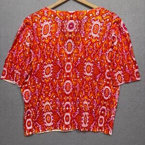 Jones New York Print Cardigan L Short Sleeve Red Pink Orange Bold Statement