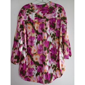 Jones New York Purple/Pink Tie Dye Pasley Linen V-Neck Blouse size Medium,
