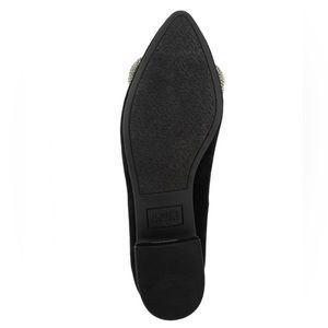 Jones New York Quinnie Heeled Loafer. Size 7.5. Black Velvet with Silver heel and bow.