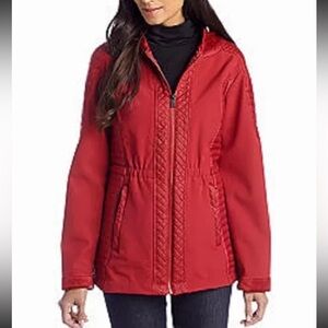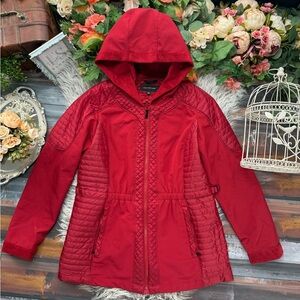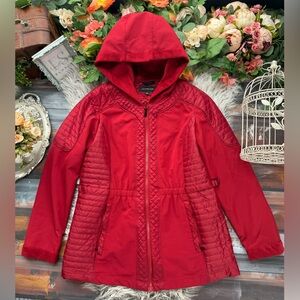Jones New York Red Outerwear Faux Fur Hooded Mixed Media Velour Pile Coat - $180