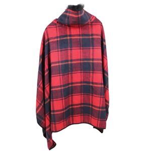 Jones New York Red Plaid Faux Fur Cape Coat One Size Cozy Winter Layer