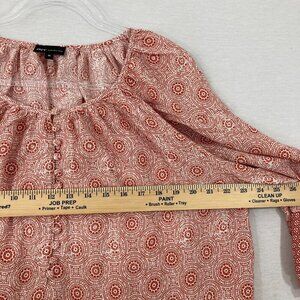 Jones New York Red Tan Patterned 3/4 Sleeve Peasant Popover Blouse 1X Soft Rayon
