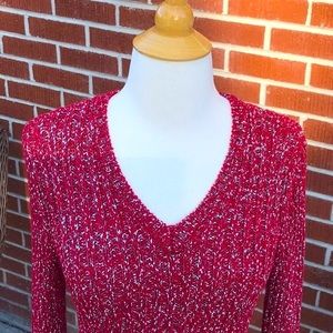 Jones New York Red V Neck Sweater withh Bell Sleeves Size Medium