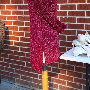 EUC Jones New York Sweater in Red with Black, Grey and White stitching is a size Medium. Sweater features V neck, split sleeve with slight bell at wrists, split side with hi lo hemline, and heavier weight that drapes very well. Excellent preowned condition….refer to photos. Selling from a smoke free and pet free home.