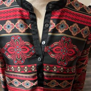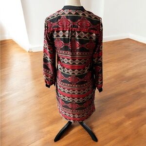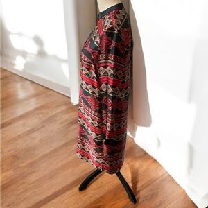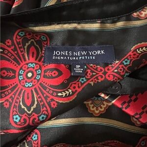 Stylish Jones New York midi dress. Features a vibrant red and black pattern. Perfect for any occasion.