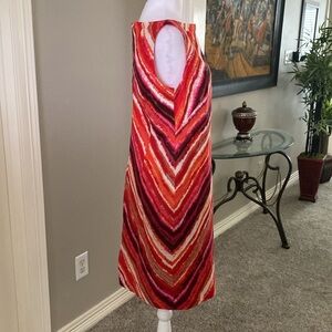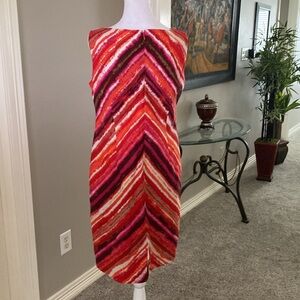 Jones New York Red and Pink Cotton Sheath Midi Dress Sleeveless Bateau size 8