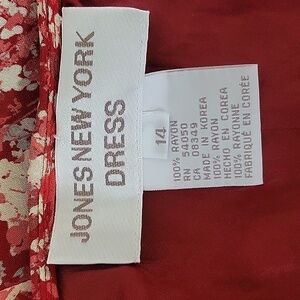 Jones New York Red and Tan Lined Floral Drape Neck Pullover Dress - Size 14