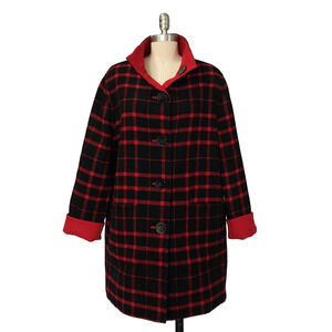 Jones New York Reversible Jacket Coat Size M Red Plaid Retro Style Wool Blend