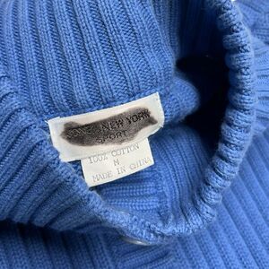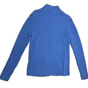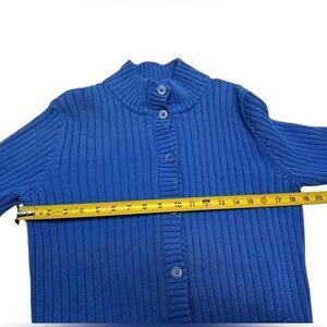 Jones New York Ribbed Blue Button Up Sweater Collar Turtleneck Cardigan Jumper