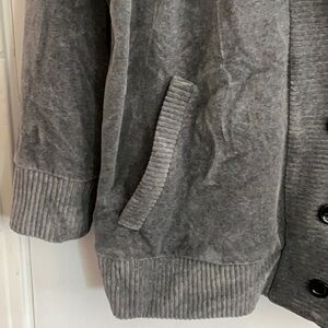 Jones New York Ribbed Gray Cardigan with Ribbed Trim and Pockets 1X