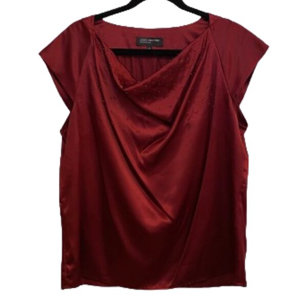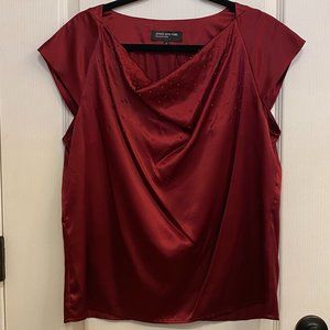 Jones New York Ruby Red Cowl Neck Blouse size 14 with Beading Detail